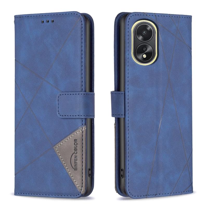 For OPPO A38 4G Magnetic Buckle Rhombus Texture Leather Phone Case(Blue)