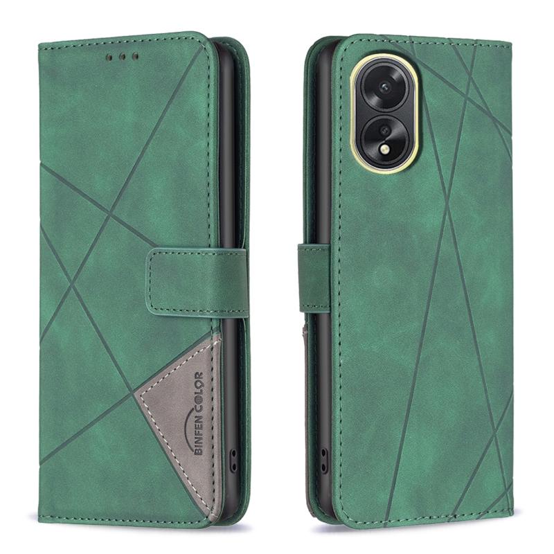 For OPPO A38 4G Magnetic Buckle Rhombus Texture Leather Phone Case(Green)