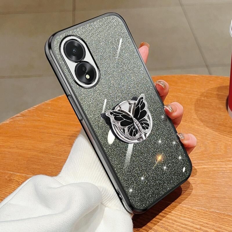 Για OPPO A38 4G επιμεταλλωμένο διαβάθμιση Glitter πεταλούδα κάτοχος TPU τηλέφωνο υπόθεση (Μαύρο)