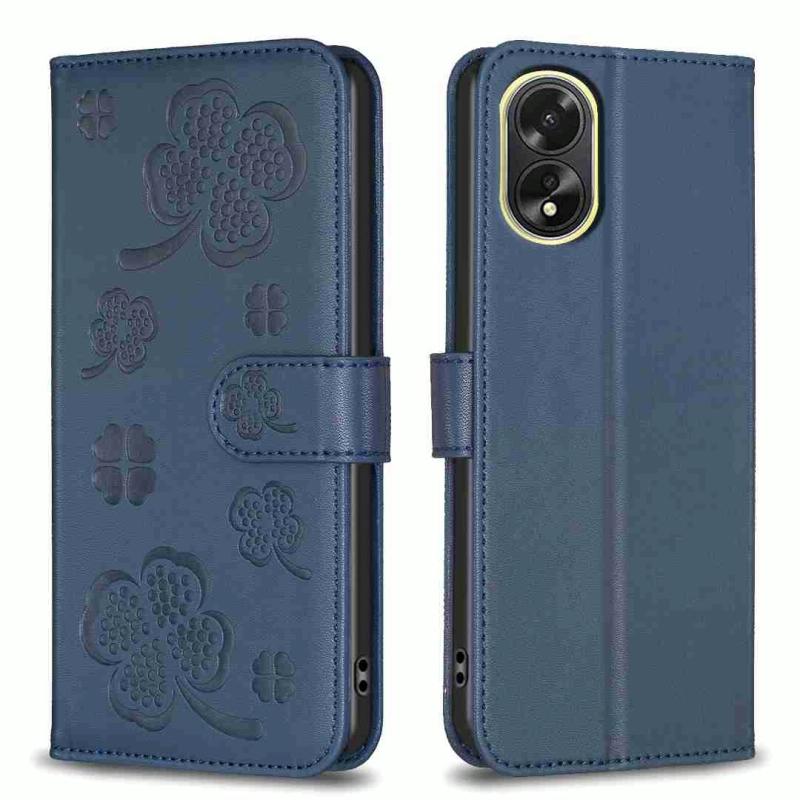 For OPPO A38 / A18 4G Four-leaf Embossed Leather Phone Case(Blue)