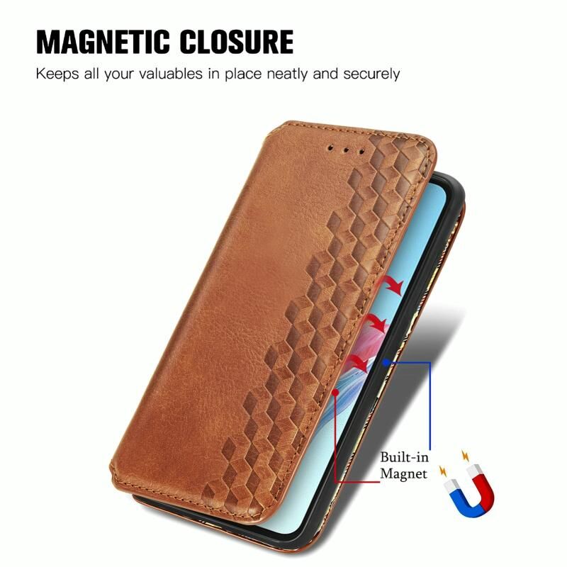 Για OPPO A38 Cubic πλέγμα πιέζεται μαγνητική δερμάτινη θήκη τηλεφώνου (καφέ)