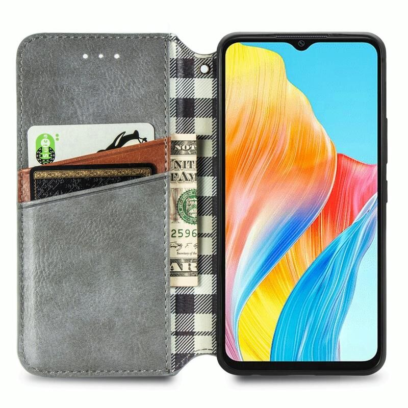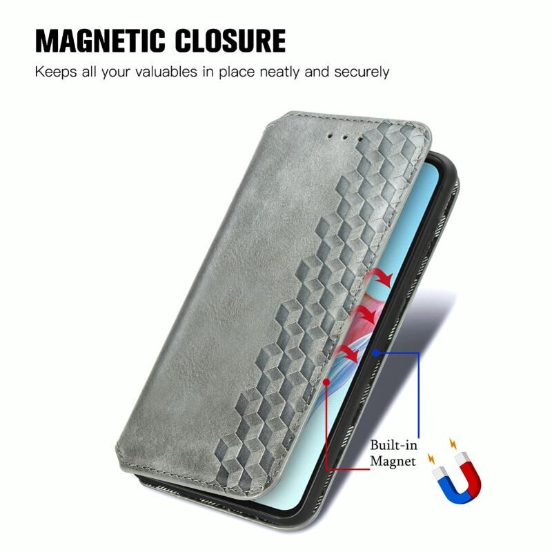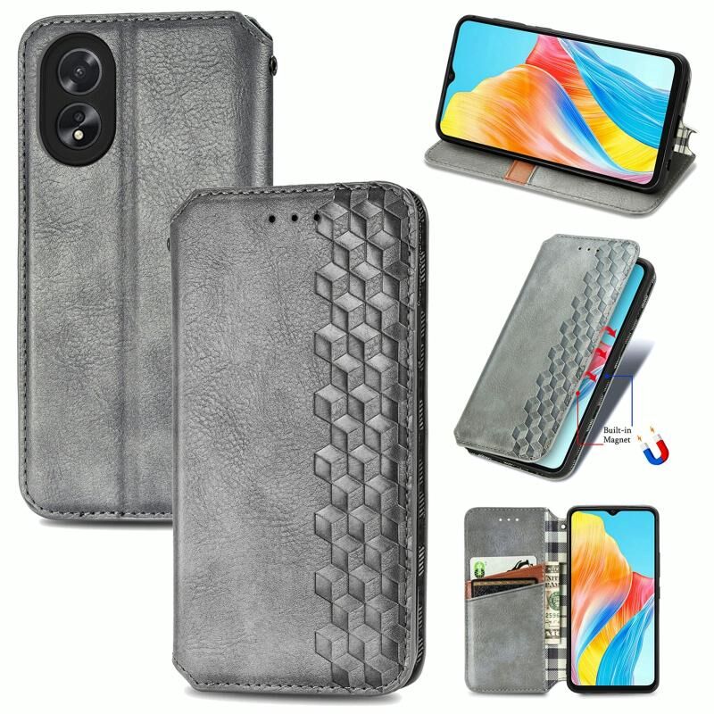 Για OPPO A38 Cubic πλέγμα πιέζεται μαγνητική δερμάτινη θήκη τηλεφώνου (γκρι)