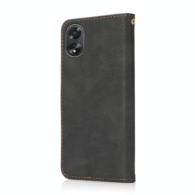 Για OPPO A38 Διπλό χρώμα ραφή δερμάτινη θήκη τηλεφώνου (μαύρο καφέ)