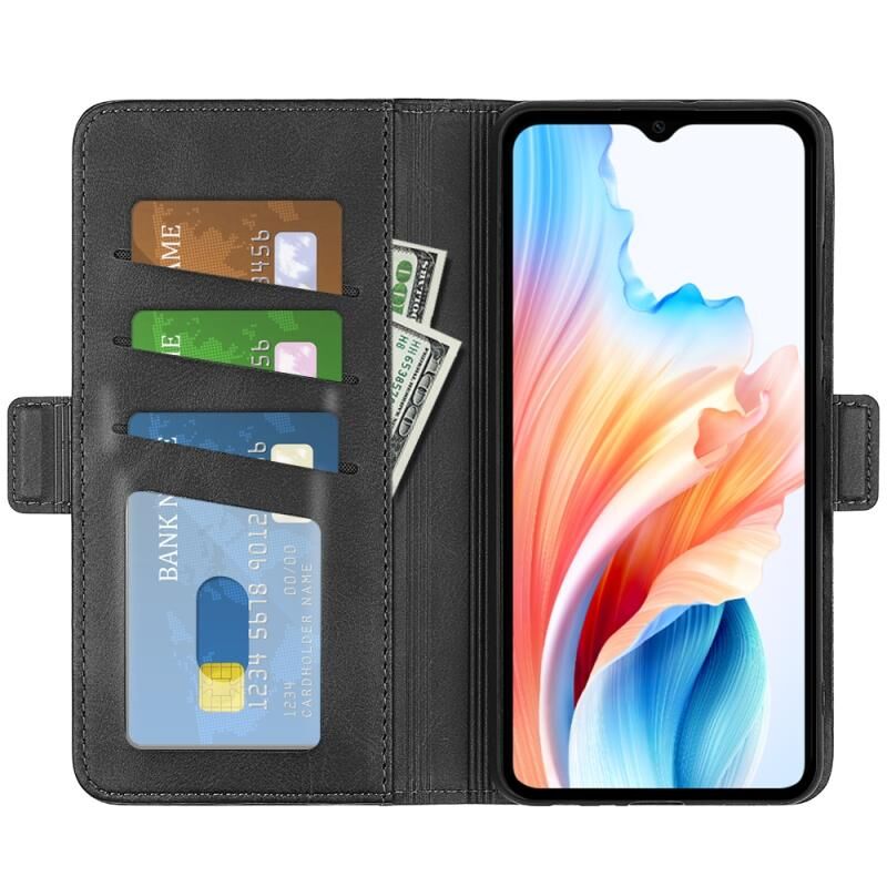 Θήκη τηλεφώνου από δέρμα με οριζόντιο άνοιγμα και μαγνητικό κούμπωμα διπλής όψης για OPPO A38 (Μαύρο)