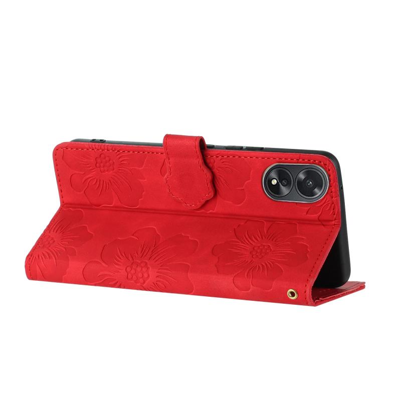 Θήκη τηλεφώνου δερμάτινη με ανάγλυφο σχέδιο λουλουδιών για OPPO A38 (Κόκκινο)