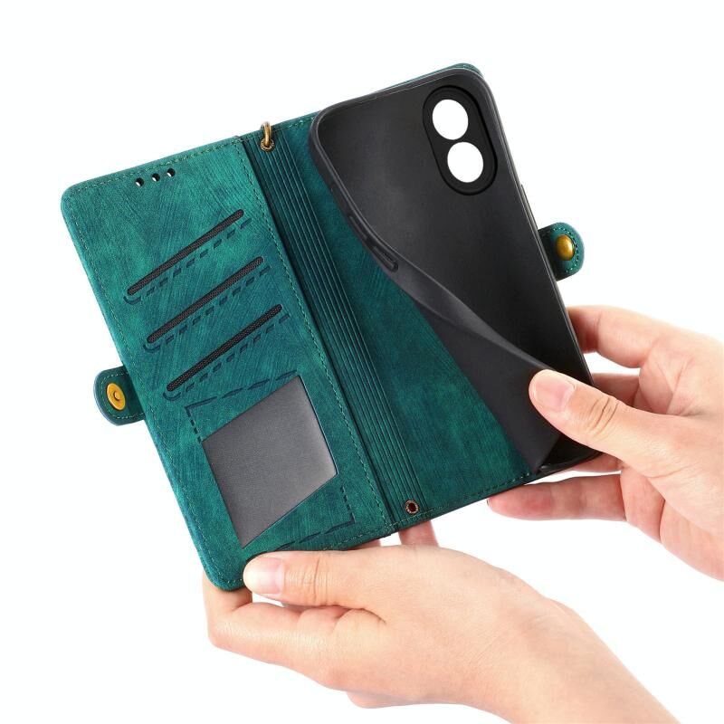Για OPPO A38 γεωμετρική φερμουάρ πορτοφόλι πλευρά πόρπη δερμάτινη θήκη τηλεφώνου (πράσινο)