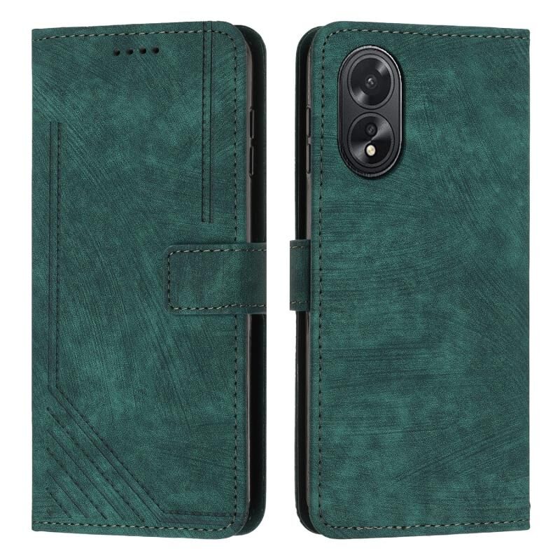 Για OPPO A38 Δέρμα αισθάνονται λωρίδα μοτίβο δερμάτινη θήκη τηλεφώνου με κορδόνι (πράσινο)