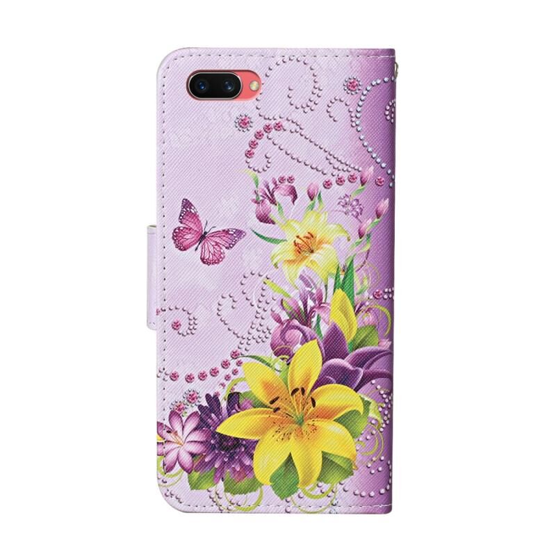 Θήκη δέρματος οριζόντιας αναδίπλωσης με σχέδια και χρώματα για OPPO A3S με βάση στήριξης & υποδοχές καρτών & πορτοφόλι (Κόκκινο)