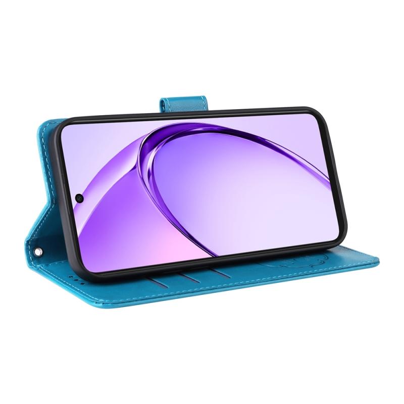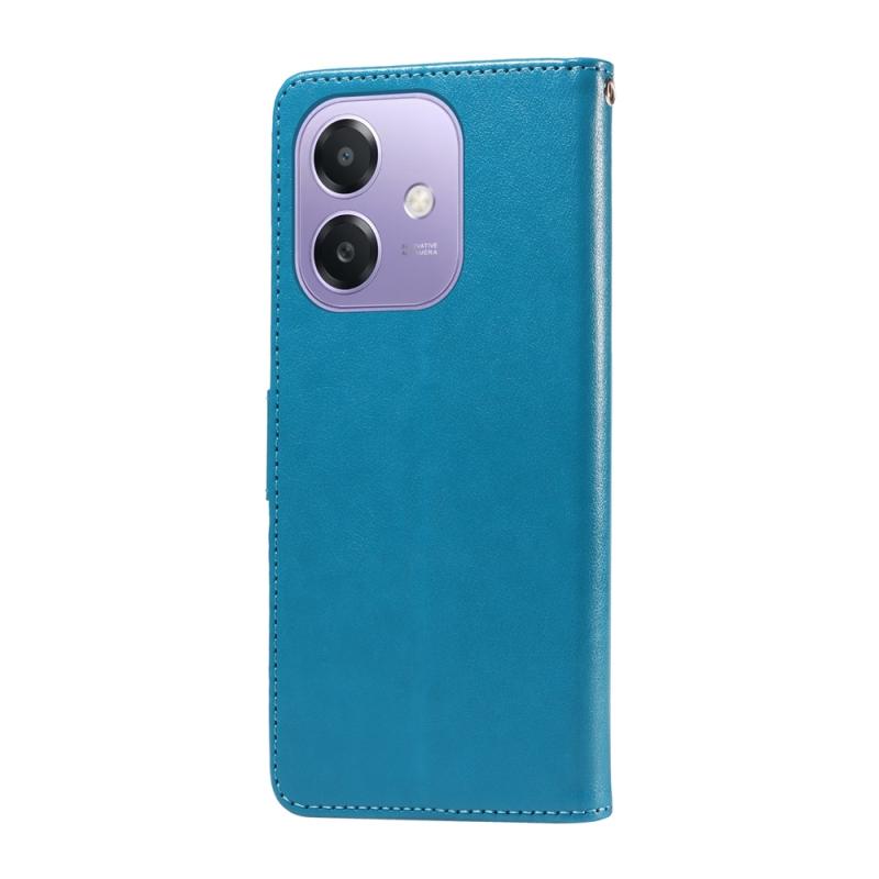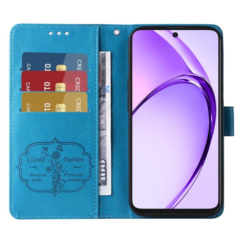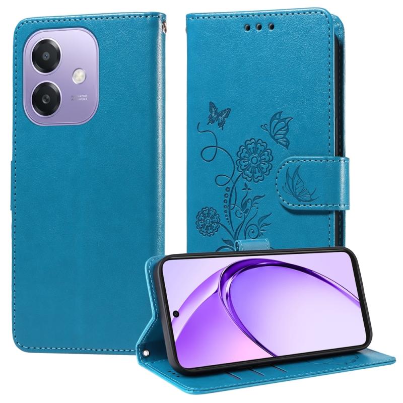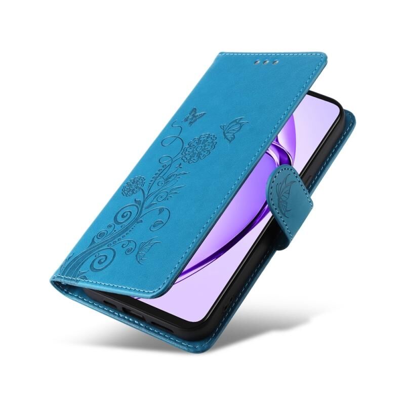Θήκη τηλεφώνου από δέρμα με ανάγλυφα λουλούδια και πεταλούδες για OPPO A3x 4G / A3x 5G Ινδία (Μπλε)