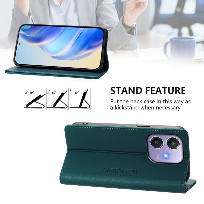 Θήκη τηλεφώνου από δέρμα με μαγνητική απορρόφηση και διπλή πτύχωση για OPPO A3x 5G / 4G / A3 5G / 4G RC01 (Μέντας Πράσινο)