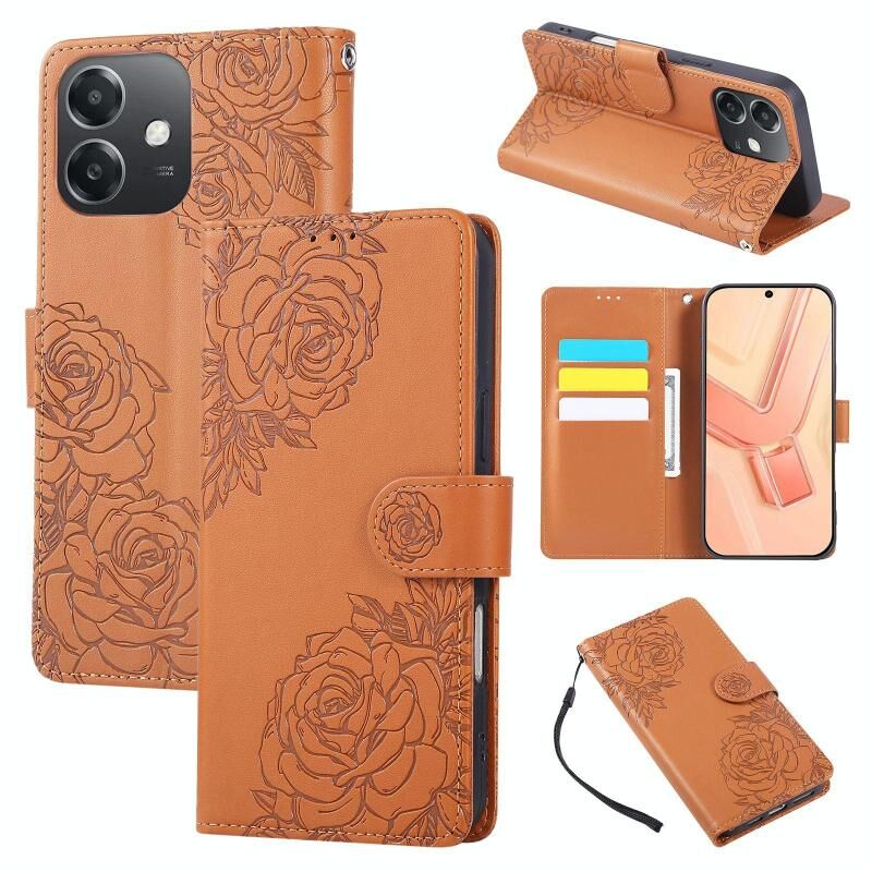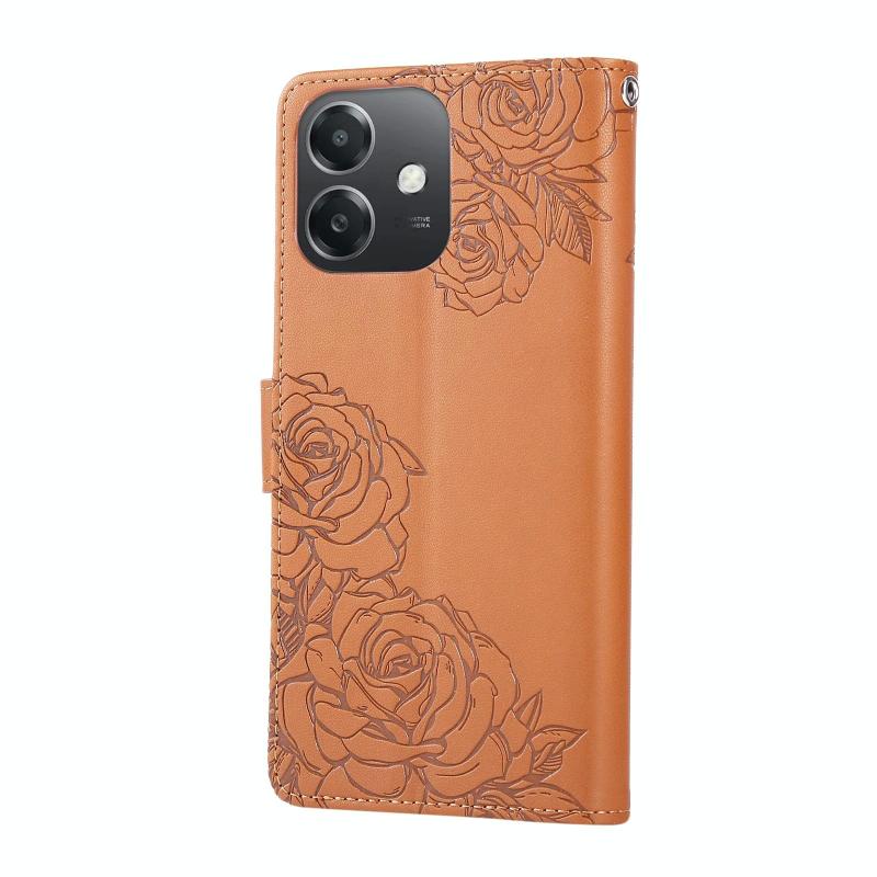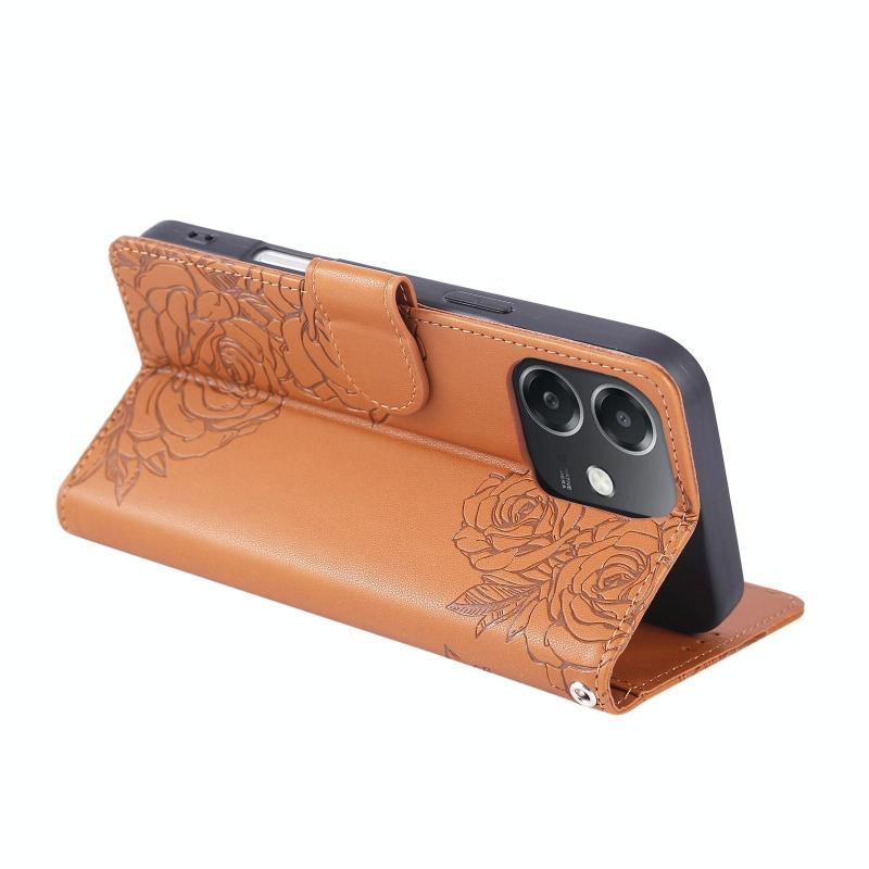 For OPPO A3X 5G India / 4G / A3 Global Rose Flower Embossed 3-Card Slots Leather Phone Case(Brown)