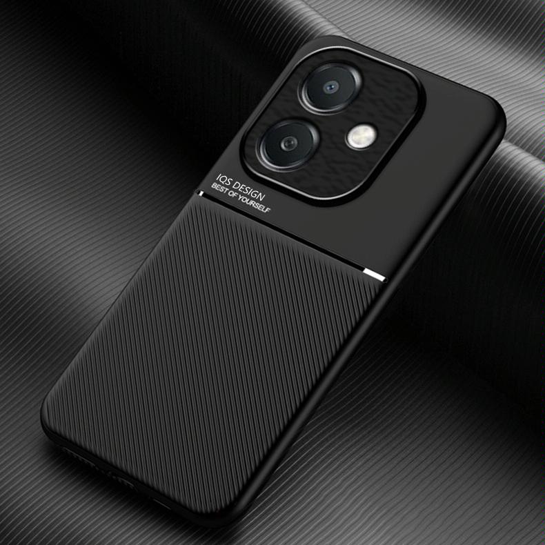 For OPPO A3x 5G India Classic Tilt Strip Grain Magnetic PC Hybrid TPU Phone Case(Black)