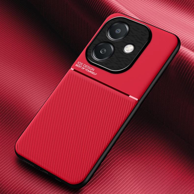 For OPPO A3x 5G India Classic Tilt Strip Grain Magnetic PC Hybrid TPU Phone Case(Red)