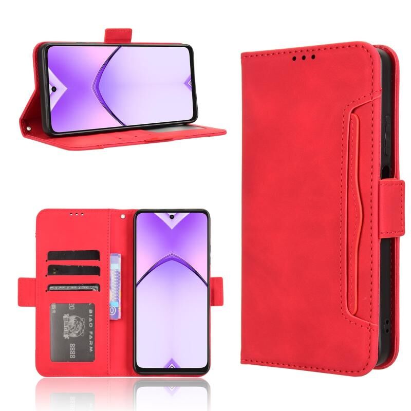 Για OPPO A3x 5G Ινδία δέρμα Ινδία αίσθηση μοσχάρι υφή κάρτα υποδοχές δερμάτινη θήκη τηλεφώνου (Κόκκινο)