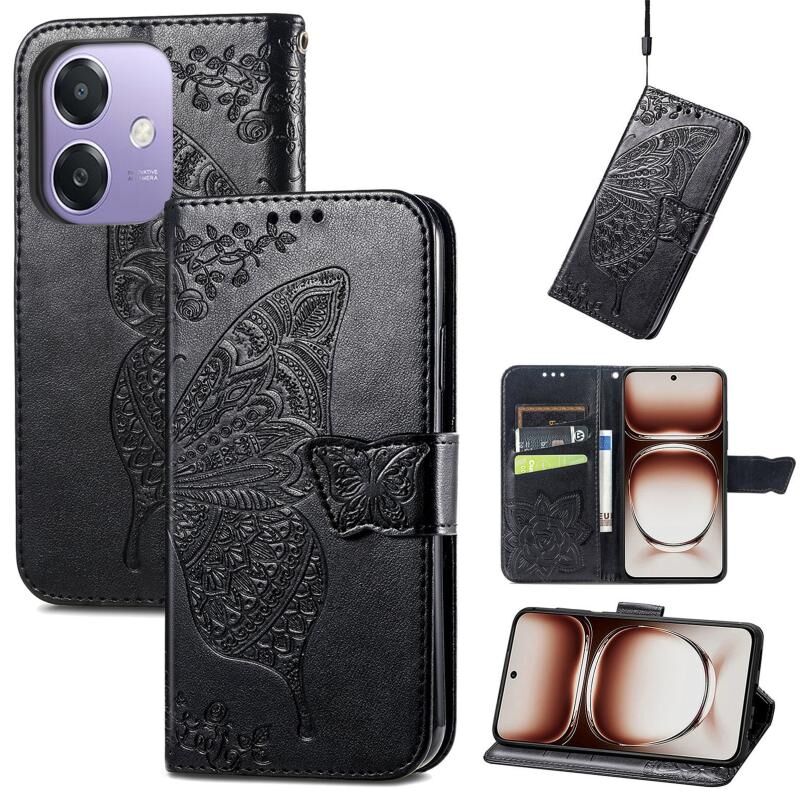 Θήκη τηλεφώνου από δέρμα με ανάγλυφο σχέδιο πεταλούδας και λουλουδιών για OPPO A3X (Σκούρο Μωβ)