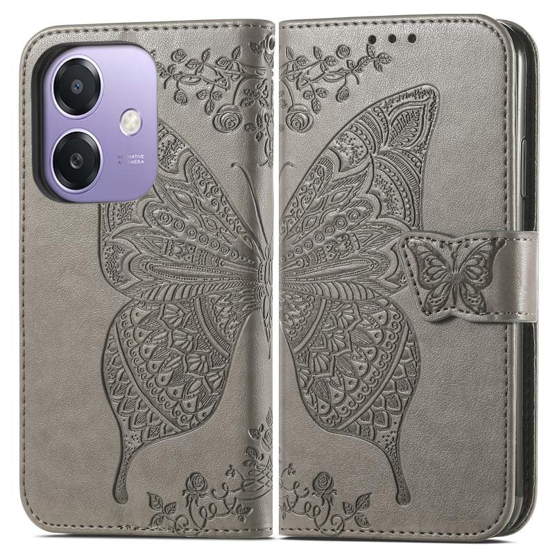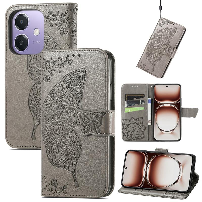 For OPPO A3X Butterfly Love Flower Embossed Leather Phone Case(Grey)