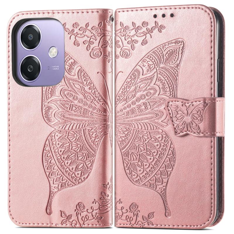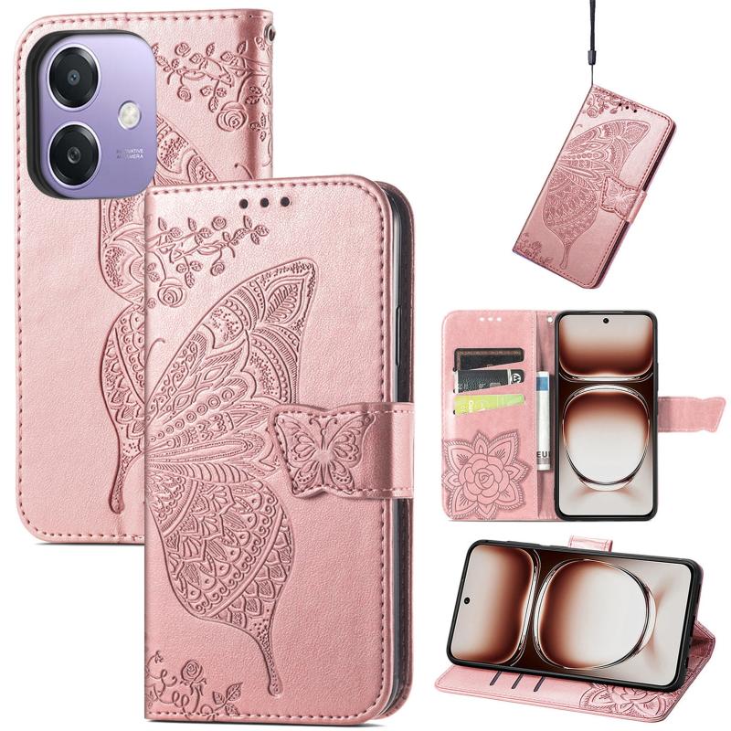 For OPPO A3X Butterfly Love Flower Embossed Leather Phone Case(Rose Gold)