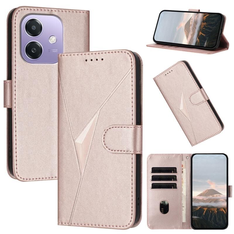 Θήκη τηλεφώνου από δέρμα με σχέδιο τριγώνου και μαγνητικό κούμπωμα για OPPO A3x (Σκούρο Μωβ)