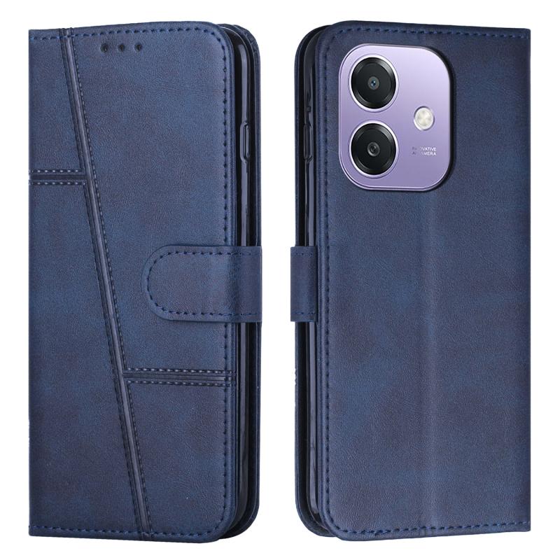 For OPPO A3x Stitching Calf Texture Buckle Leather Phone Case(Blue)