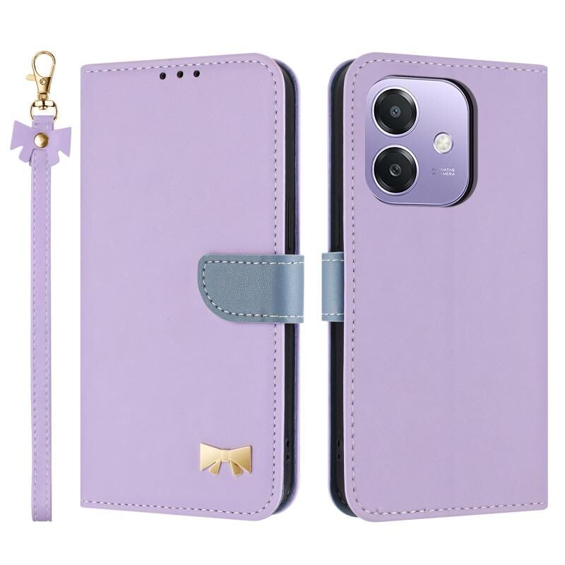 Θήκη τηλεφώνου για OPPO A40 4G Global / A60 από μέταλλο και δέρμα με σχέδιο τόξου, με λουρί χειρός (Μωβ)