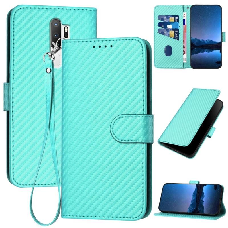 Θήκη τηλεφώνου από δέρμα με υφή ανθρακονήματος και αγκράφα για OPPO A5 2020/A9 2020/A11x/A11 με κορδόνι (Ανοιχτό μπλε)