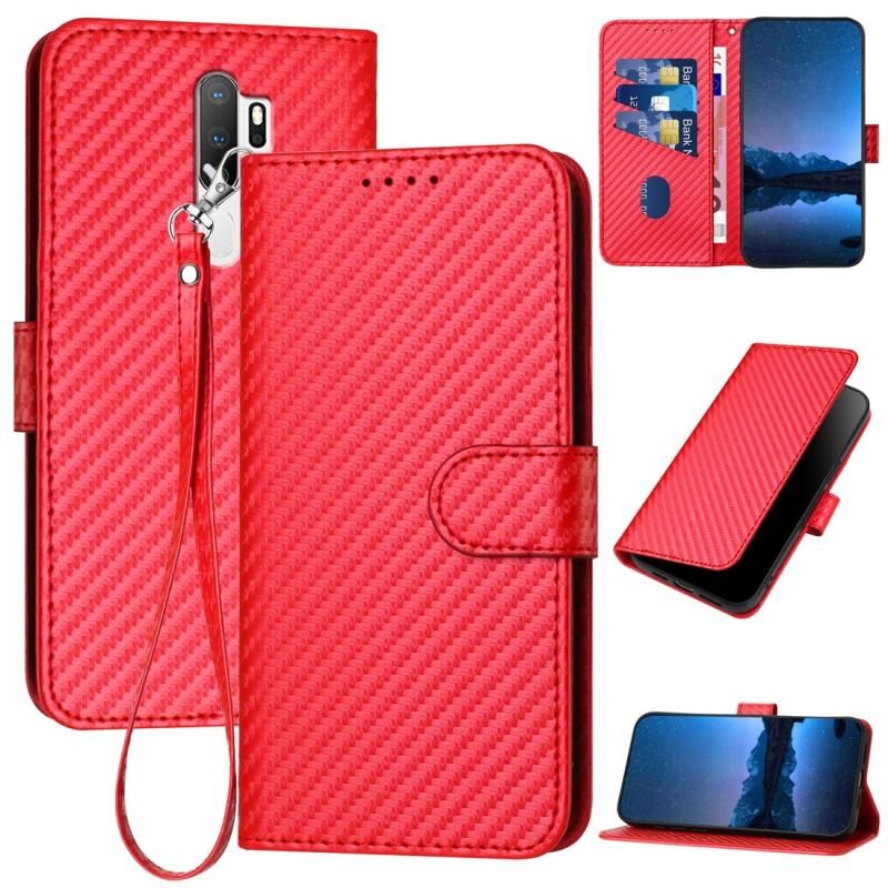 For OPPO A5 2020/A9 2020/A11x/A11 YX0070 Carbon Fiber Buckle Leather Phone Case with Lanyard(Red)