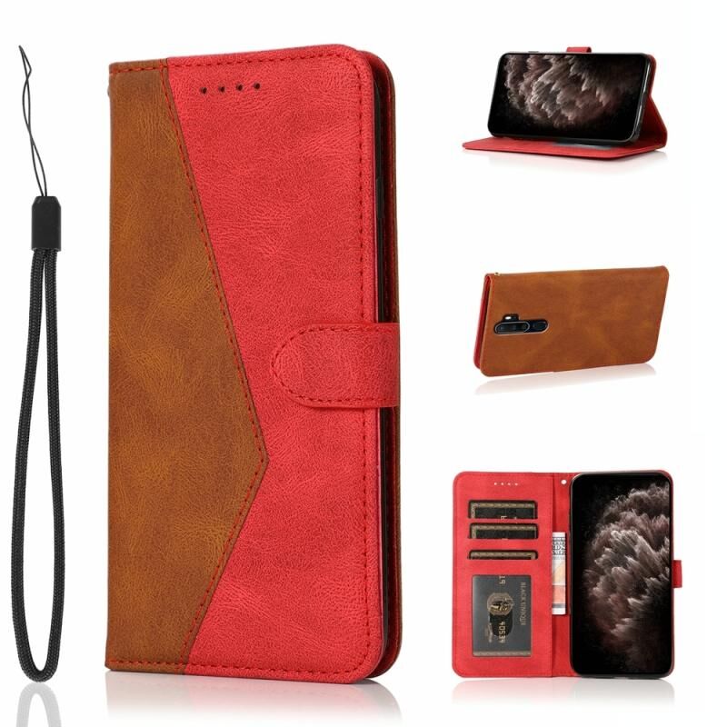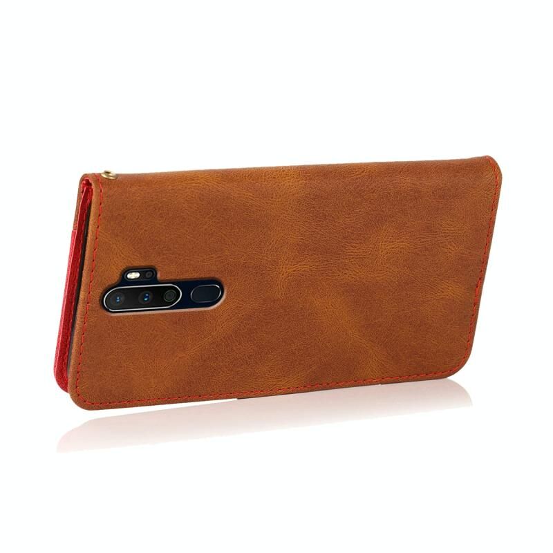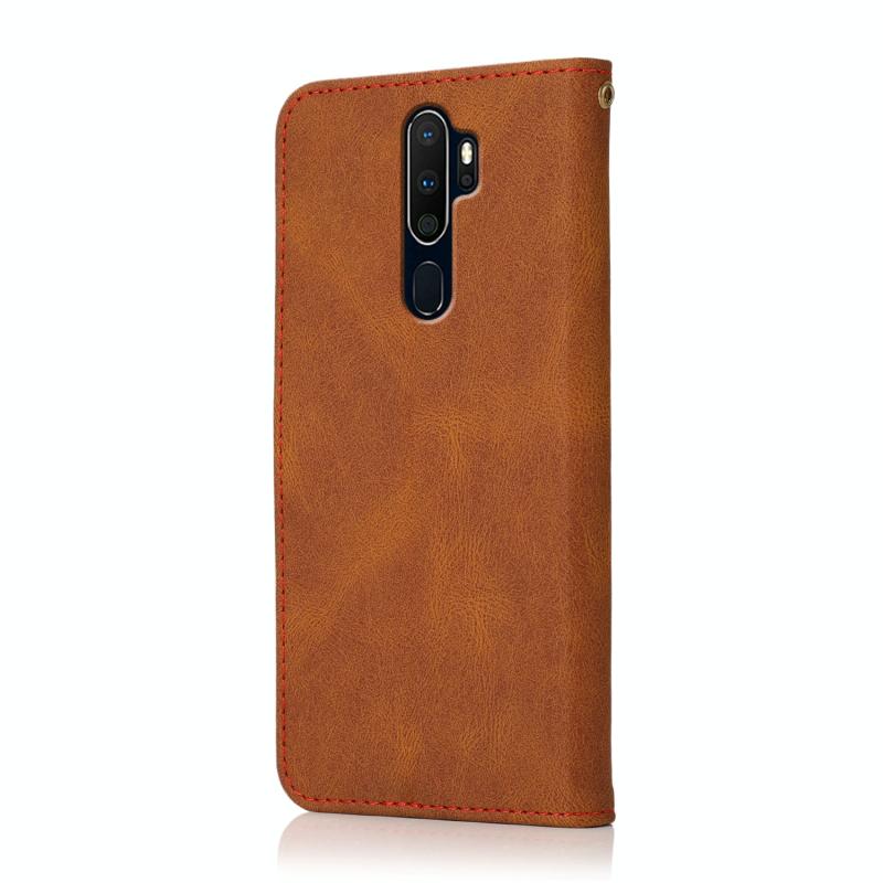 Θήκη τηλεφώνου από δέρμα με διχρωμία ραφής για OPPO A5 2020 / A9 2020 (Καφέ-κόκκινο)