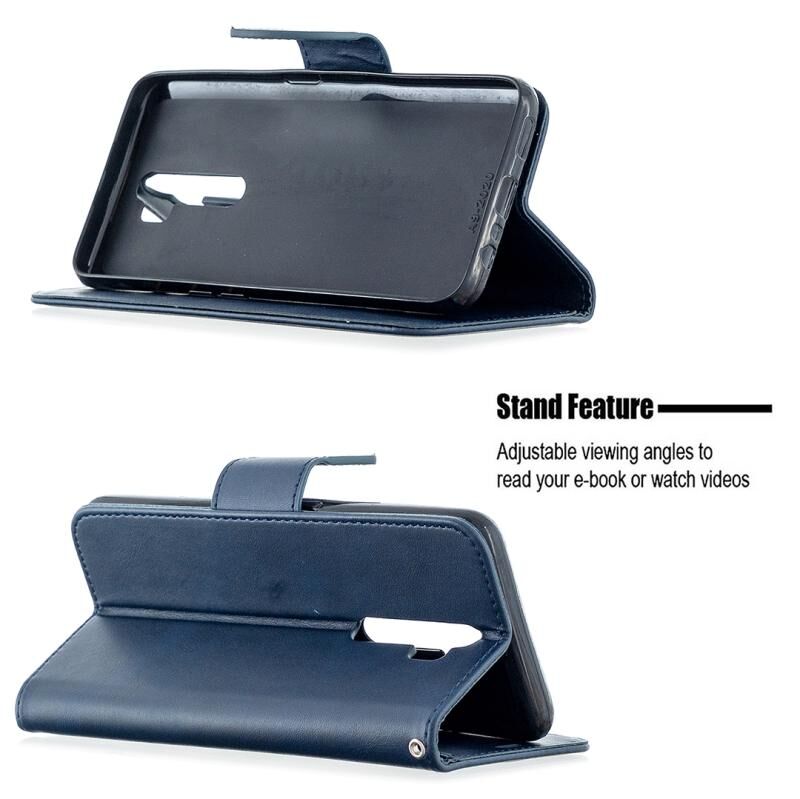Για Oppo A5 (2020) / A9 (2020) Ρετρό δέρμα αρνιού υφή καθαρό χρώμα οριζόντια Flip PU δέρμα υπόθεση με κάτοχο & υποδοχές καρτών & πορτοφόλι & κορδόνι (μπλε)
