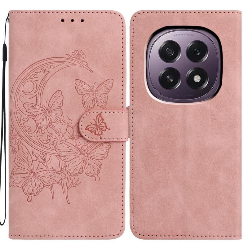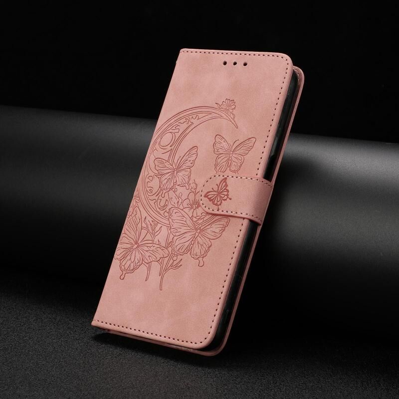 Θήκη τηλεφώνου από δέρμα με ανάγλυφο σχέδιο χορού πεταλούδας σε φεγγαρόφωτο για OPPO A5 5G (ρόζ)