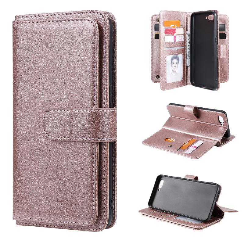 Θήκη για OPPO A5 / A3s Πολυλειτουργική Μαγνητική Θήκη από Δέρμα με Αγκράφα Χαλκού, Οριζόντια, Μονόχρωμη, με 10 Θήκες για Κάρτες & Πορτοφόλι & Στήριξη & Φωτογραφίες (Χρυσό Ρόδι)