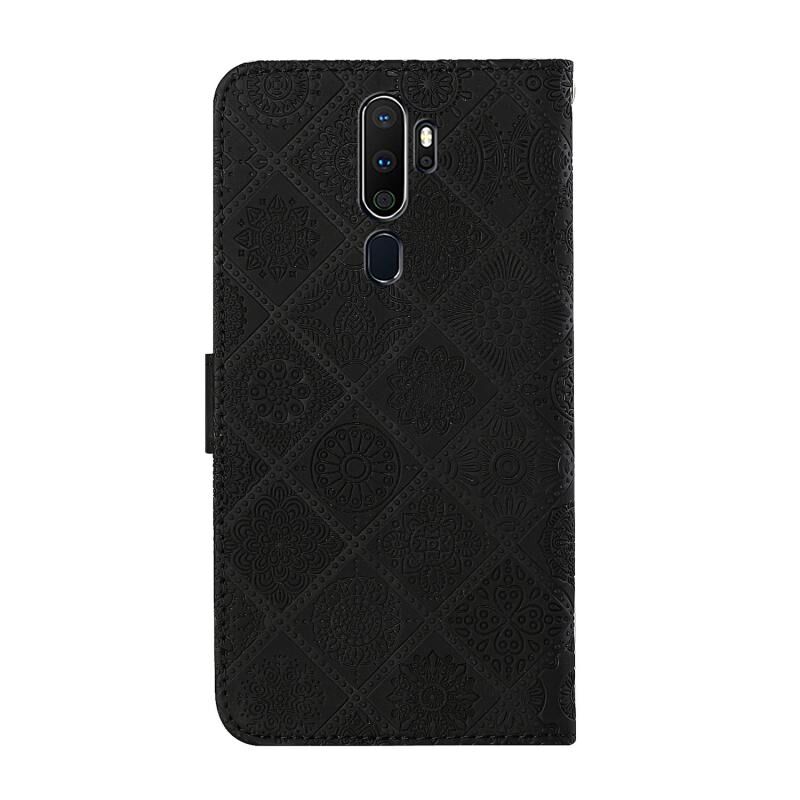 Για OPPO A5 / A9 2020 Θήκη Δέρματος Οριζόντιας Αναδίπλωσης με Εθνοτικό Στυλ και ανάγλυφο σχέδιο, με βάση στήριξης & Θήκες Καρτών & Πορτοφόλι & Λουρί (Μαύρο)