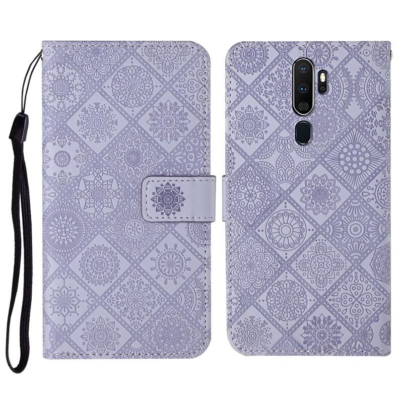Για OPPO A5 / A9 2020 Ethnic Style ανάγλυφο μοτίβο οριζόντια Flip δερμάτινη θήκη με κάτοχο & υποδοχές για κάρτες & πορτοφόλι & κορδόνι (μωβ)