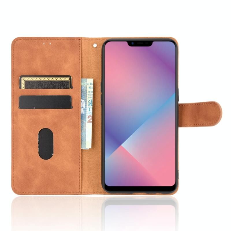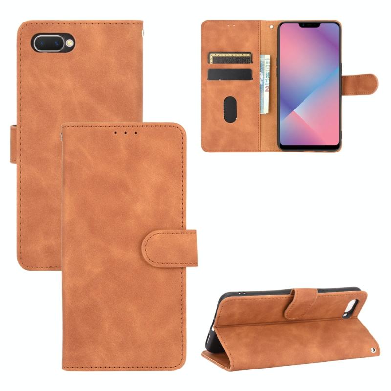 For OPPO A5(AX5) / A3s / A12e Solid Color Skin Feel Magnetic Buckle Horizontal Flip Calf Texture PU Leather Case with Holder & Card Slots & Wallet(Brown)