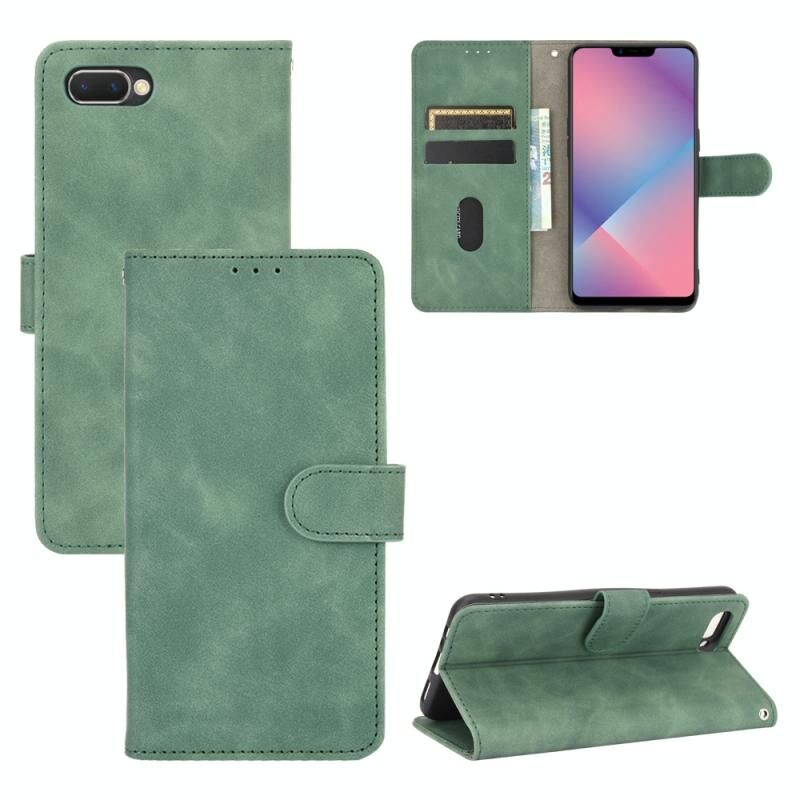 For OPPO A5(AX5) / A3s / A12e Solid Color Skin Feel Magnetic Buckle Horizontal Flip Calf Texture PU Leather Case with Holder & Card Slots & Wallet(Green)
