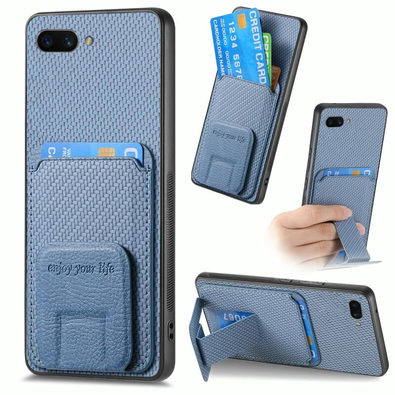 Θήκη για OPPO A5 Carbon Fiber με Κάρτες & Στήριξη (Μπλε)