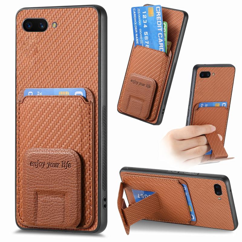 Θήκη για OPPO A5 Carbon Fiber με Κάρτες & Στήριξη (Καφέ)