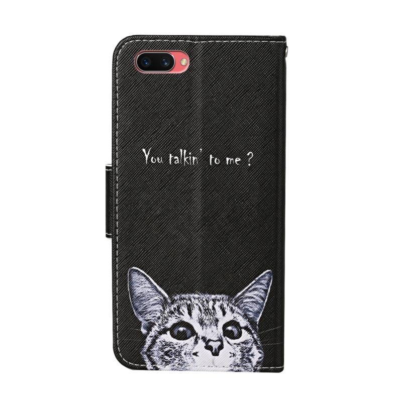 Θήκη δέρματος οριζόντιας αναδίπλωσης με σχέδιο πολύχρωμης ζωγραφικής για OPPO A5 με βάση & υποδοχές καρτών & πορτοφόλι (Γάτα)