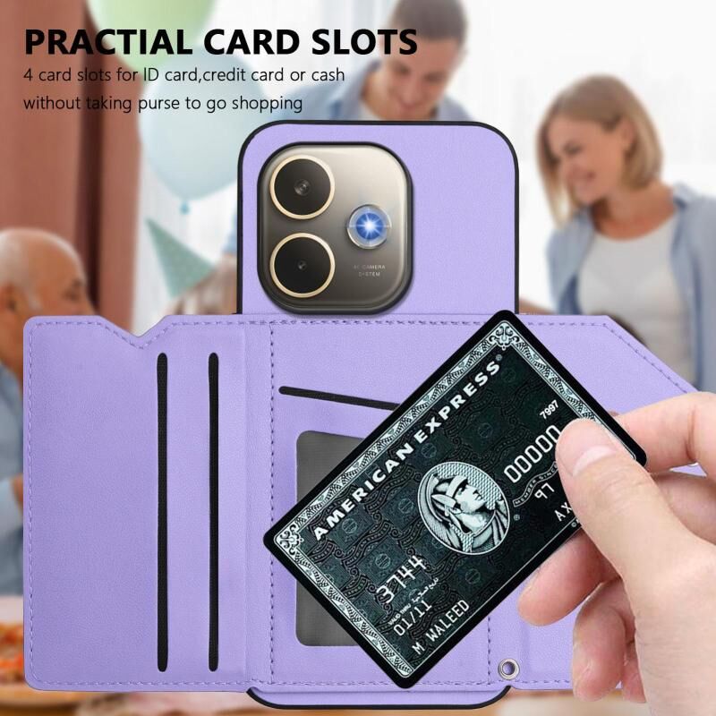 1. Πολυλειτουργικός Σχεδιασμός: Συνδυάζει λειτουργίες θήκης τηλεφώνου και πορτοφολιού για εύκολη μεταφορά.