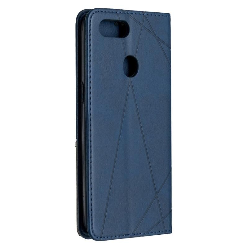 Θήκη δέρματος οριζόντιας αναδίπλωσης με αόρατο μαγνητικό κλείσιμο για OPPO A5 Prismatic με βάση στήριξης & υποδοχές καρτών & κορνίζα φωτογραφιών (Μπλε)