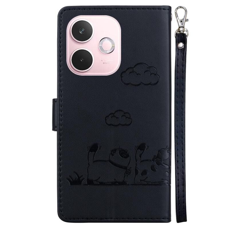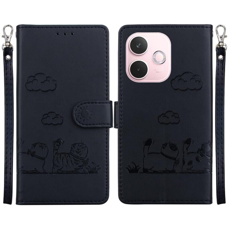 Θήκη τηλεφώνου από δέρμα με χαριτωμένες γάτες RFID για OPPO A5 Pro 5G (Μαύρο)