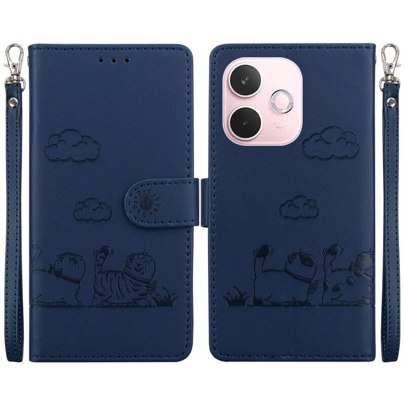 Θήκη τηλεφώνου από δέρμα με χαριτωμένες γάτες RFID για OPPO A5 Pro 5G (Μπλε)