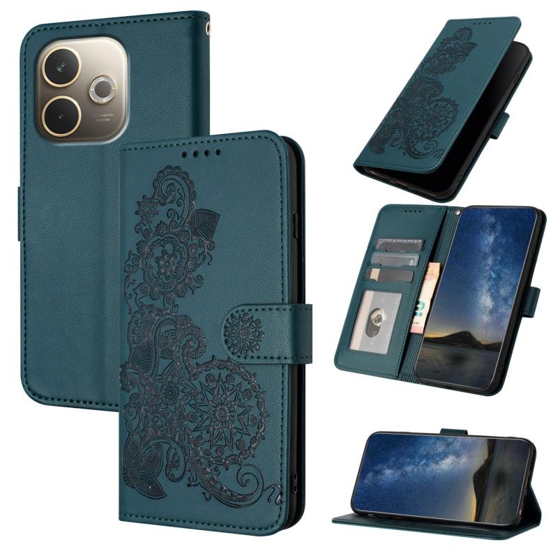 Θήκη τηλεφώνου από δέρμα με ανάγλυφο σχέδιο λουλουδιού Datura για OPPO A5 Pro 5G (Μπλε)