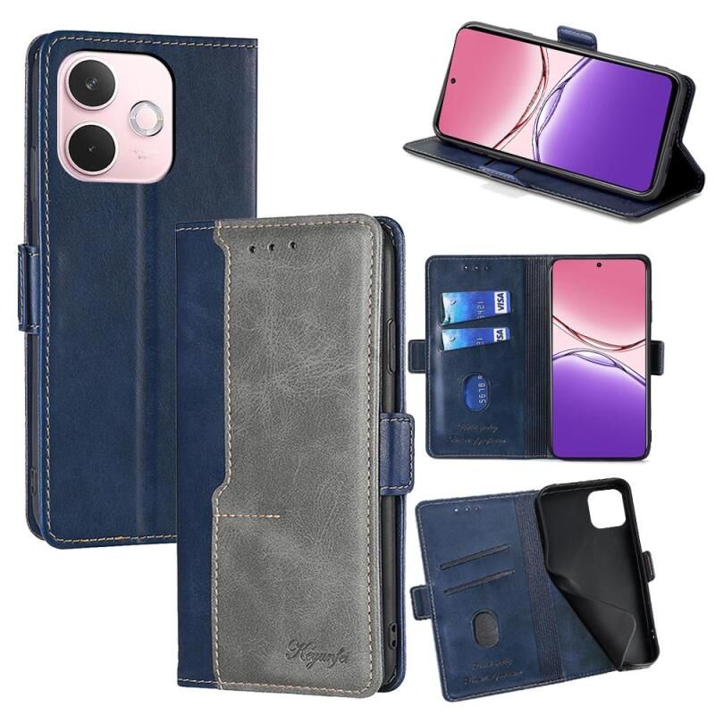 Θήκη τηλεφώνου από δέρμα με πλευρικές αγκράφες και αντίθετα χρώματα για OPPO A5 Pro 5G (Μπλε και γκρι)