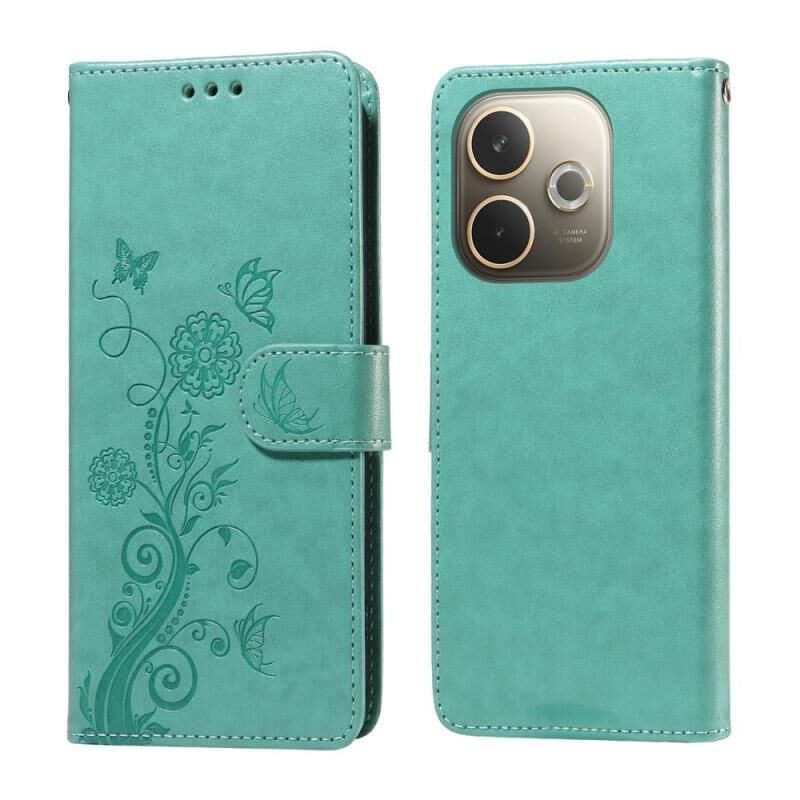 Θήκη τηλεφώνου από δέρμα με ανάγλυφα σχέδια πεταλούδας και λουλουδιών για OPPO A5 Pro 5G (πράσινο)