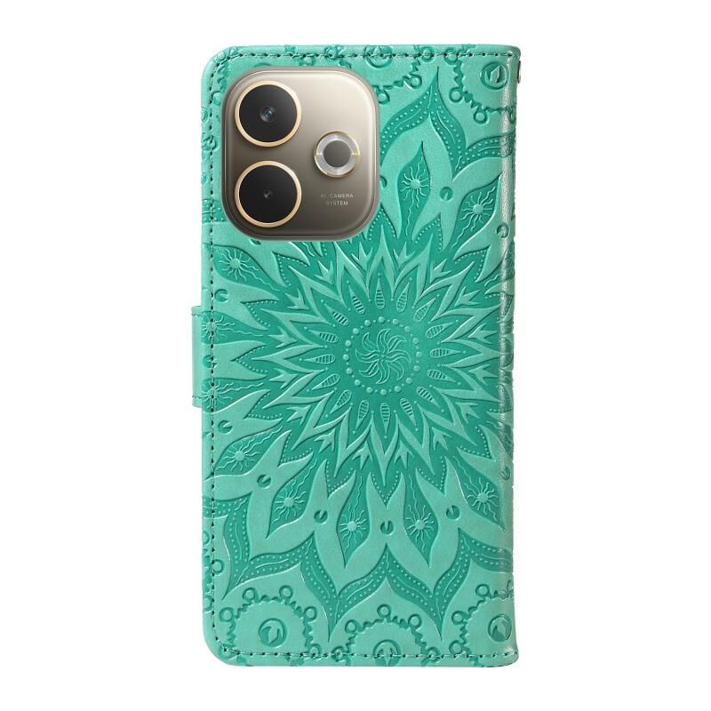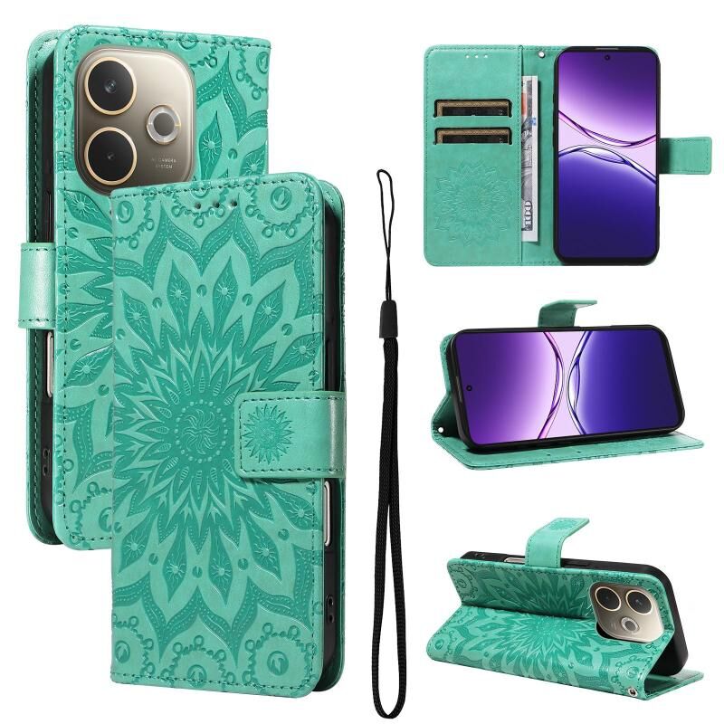 Θήκη τηλεφώνου από δέρμα με σχέδιο ανάγλυφου ηλίανθου για OPPO A5 Pro 5G Global (Χρυσό Ρόδι)