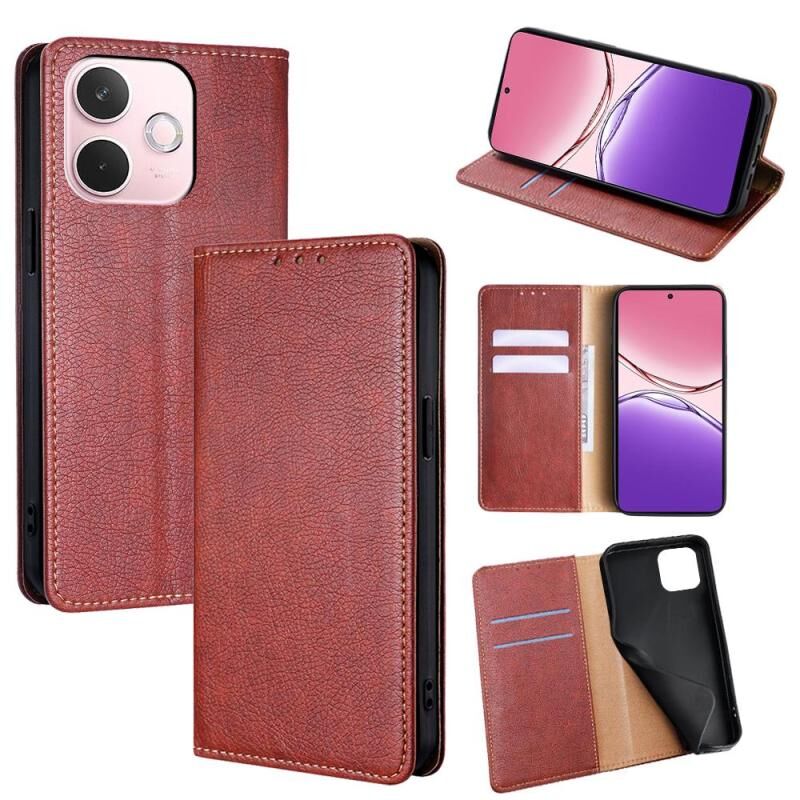 Θήκη τηλεφώνου από δέρμα με μαγνητική έλξη, συμπαγούς χρώματος, με γυαλιστερό λάδι για OPPO A5 Pro 5G (Μαύρο)