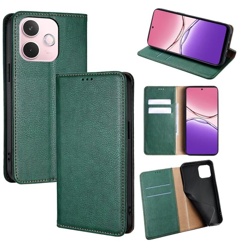 Θήκη τηλεφώνου από δέρμα με μαγνητική έλξη, συμπαγούς χρώματος, με γυαλιστερό λάδι για OPPO A5 Pro 5G (Μαύρο)