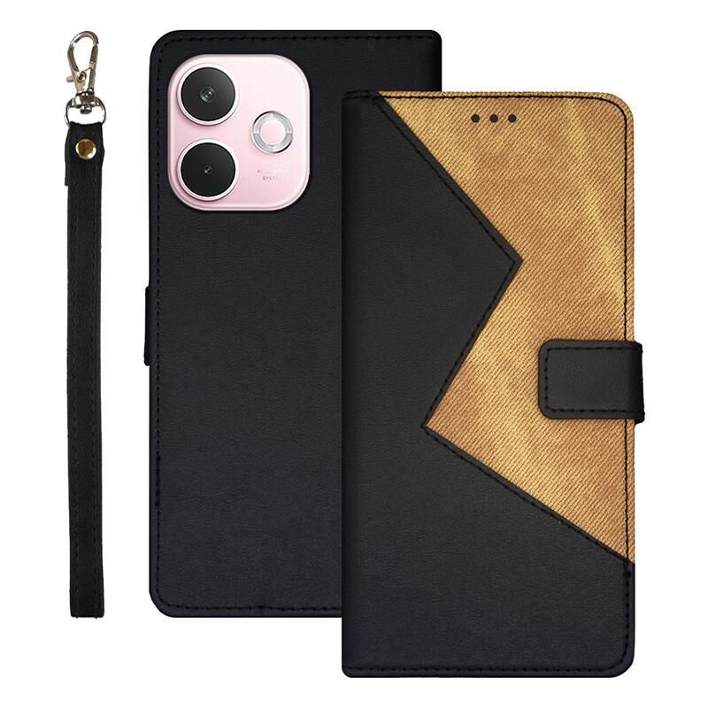 Για OPPO A5 Pro 5G Global idewei Δερμάτινη Θήκη Τηλεφώνου με Διχρωμία (Μπλε) (Μαύρο)
