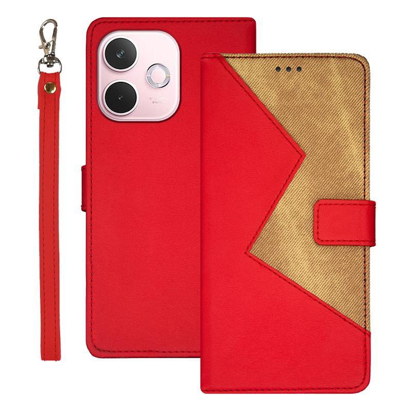 For OPPO A5 Pro 5G Global idewei Two-color Splicing Leather Phone Case(Red) (idewei)