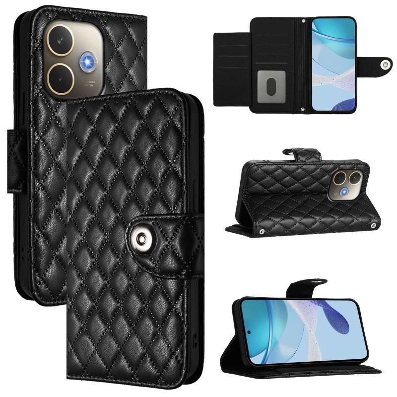 Θήκη τηλεφώνου από δέρμα με ανάγλυφη υφή ρόμβου για OPPO A5 Pro 5G Global με κορδόνι (Μαύρο)